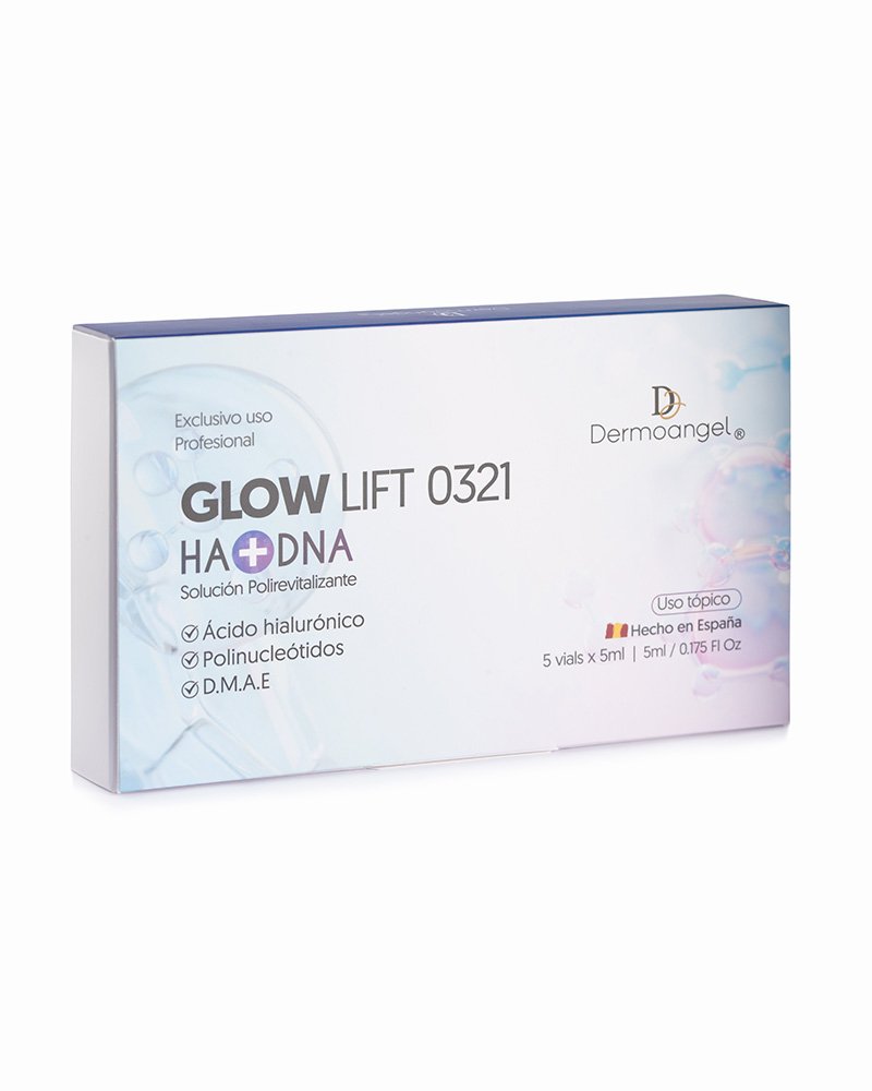 Glow Lift 0321 es una solución biorevitalizante y regeneradora que combina polinucleótidos del DNA del salmón, dimetilaminoetanol, silanetriol y una base de ácido hialurónico de bajo peso molecular que aporta hidratación.